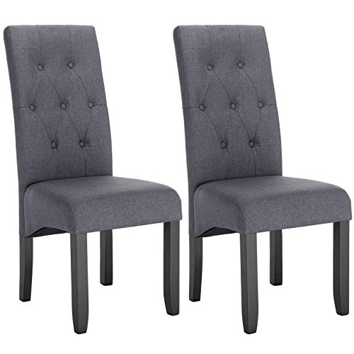 Wolut Lot de 2 Chaises de Cuisine Rembourrée Lin Pieds Massi...