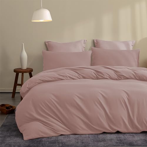 Housse Couette Rose Unie Coton 200x200 Taie d'Oreiller 65x65