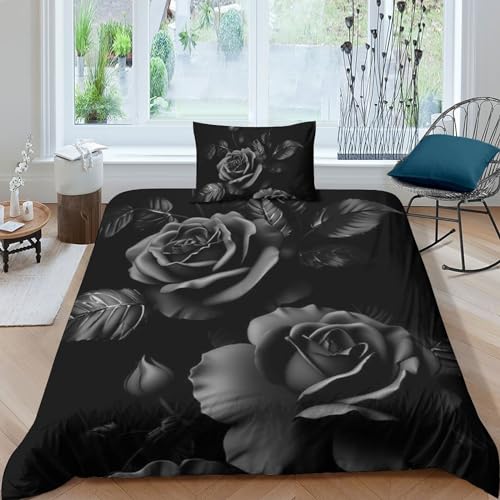Rose Noire Housse Couette 3D Thème Parures de Lit