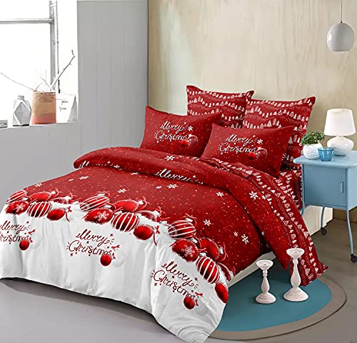 Sedefen Housse Couette Noël 220x240cm Rouge Blanc Cloche Lit...