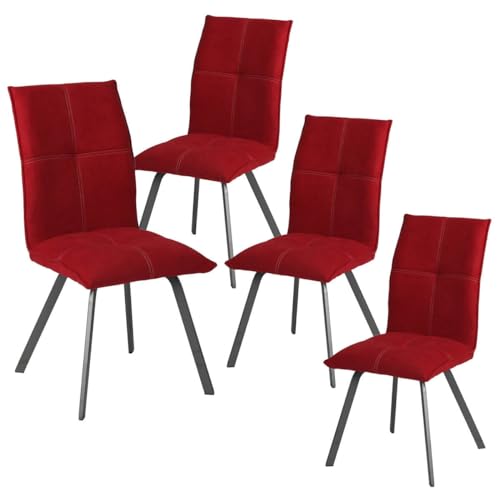 Lot de 4 Chaises Tissu Coloris Rouge Bispo.