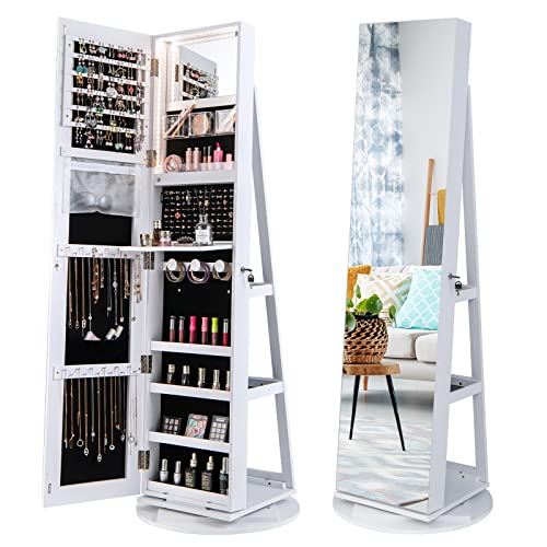 Armoire à Bijoux Pivotante 360° Design 3 en 1 avec Miroir LE...