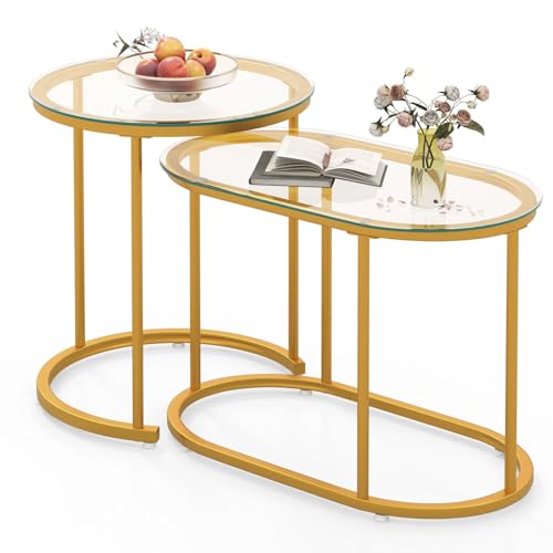 Lifezale Lot 2 Tables Basses Gigognes Verre Trempé Design Mo...
