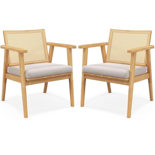 Relax4Life Fauteuil Salon Rotin Hévéa Massif Chaise Cannage...