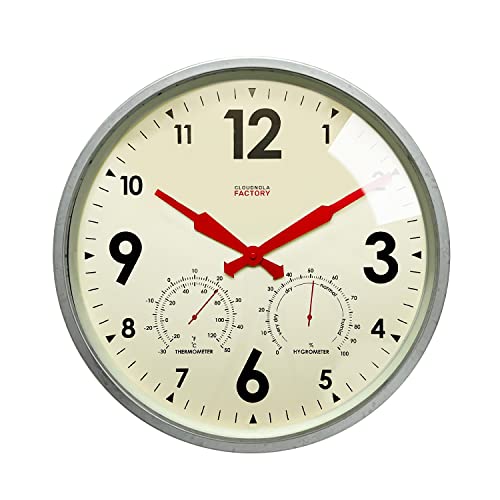 Cloudnola Horloge Murale en métal étanche avec thermomètre e...