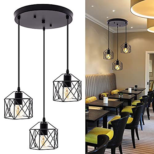Plafonnier Suspension Métal Noir 3 Hexagones Lustres Rétro I...
