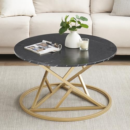 ZZINOKE Table Basse Ronde, Table de Salon Faux Marbre, Noir