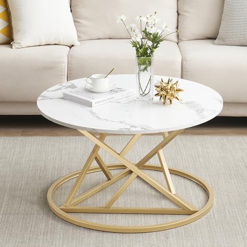 ZZINOKE Table Basse Ronde, Table Basse Aspect Faux Marbre av...