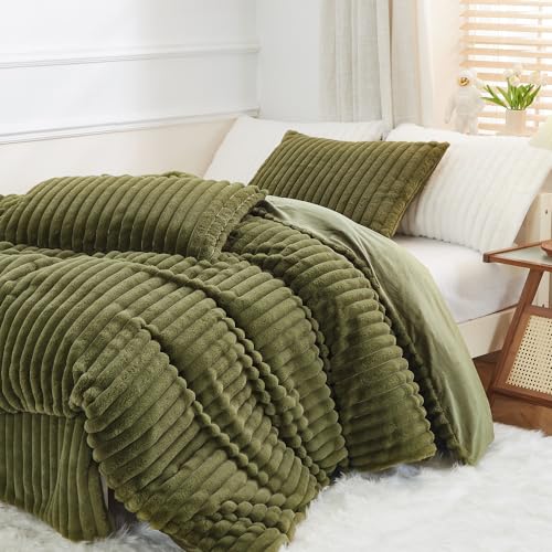 Lanqinglv Housse de Couette Peluche 140x200cm Vert Foncier