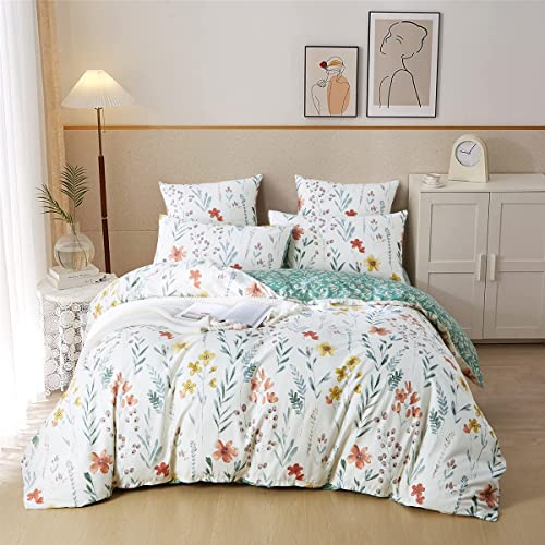 Gezu Housse Couette 220x240cm Fleurs Jaune Vert Blanc