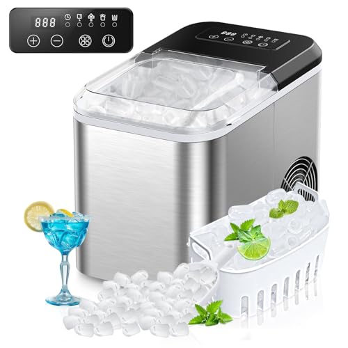Machine à Glaçons 15kg Auto-Nettoyante, 8 Glaçons en 6 Minut...
