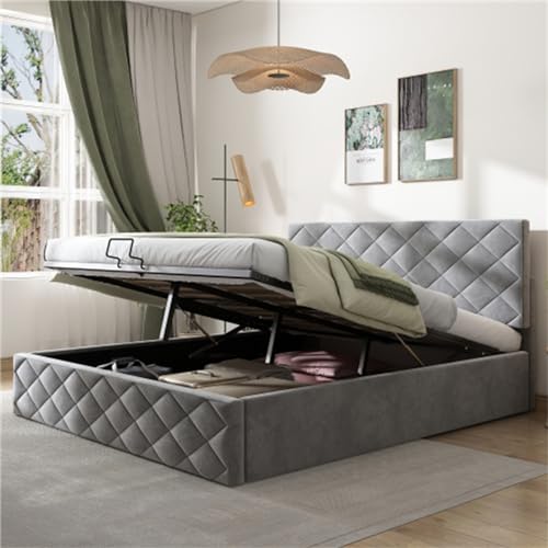 Lit Tapissé Hydraulique, 140x200 Cm, avec Sommier à Lattes E...