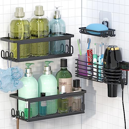 Étagère Douche Métal Sans Perçage, 4 Rangement, Porte Sèche...