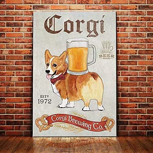 FJQWKLF Panneau en métal vintage Corgi Brewing Co, plaque ré...