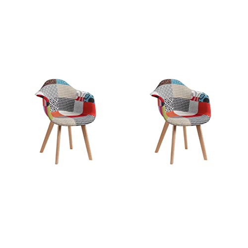 HJ Homeheart 2 Chaises Salle Cuisine Patchwork Bois Hêtre Ro...