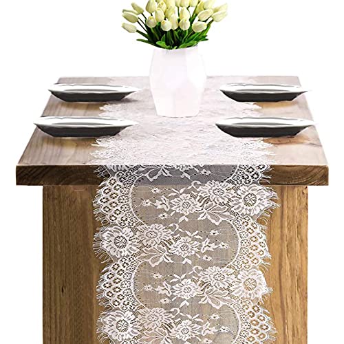 ZXCFTG Lot de 2 chemins de table brodés en dentelle blanche...