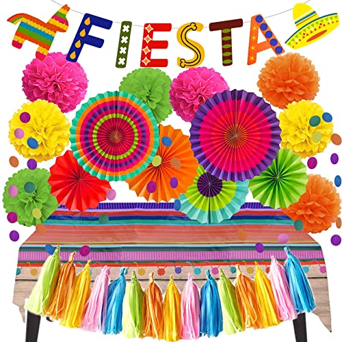 Contenu : 1 nappe multicolore, 1 bannière Fiesta, 8 pompons...