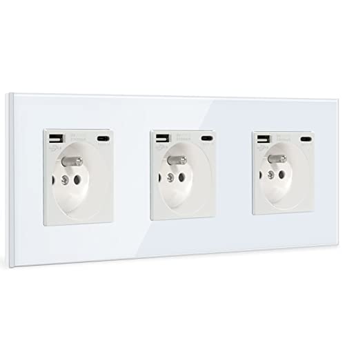 BSEED Murale Triple Prise USB-C, Type C 16A, Panneau Blanc