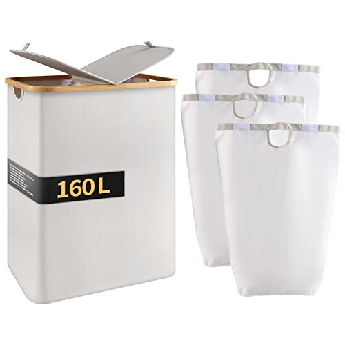 Hibisaws 160L Panier à linge avec couvercle, 2 compartiments...