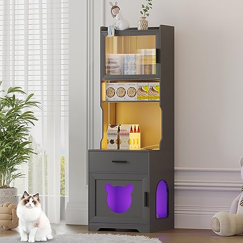 ?【Grand espace de rangement】 : Meuble Litiere Chat Niche C...