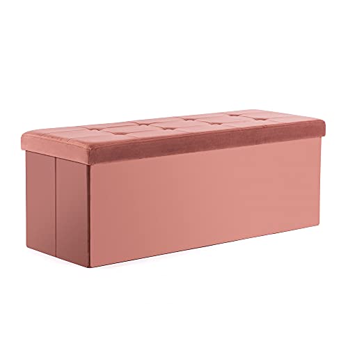 HNNHOME Pouf en velours - Coffre à jouets avec couvercle - R...
