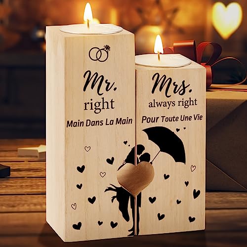 Welsky Candle (Mariage) Cadeau Mariage Bois, pour Couple, Ch...