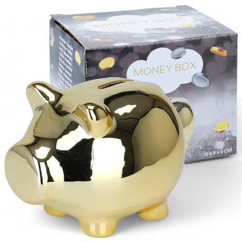 MIJOMA Tirelire de luxe en forme de cochon doré brillant et...
