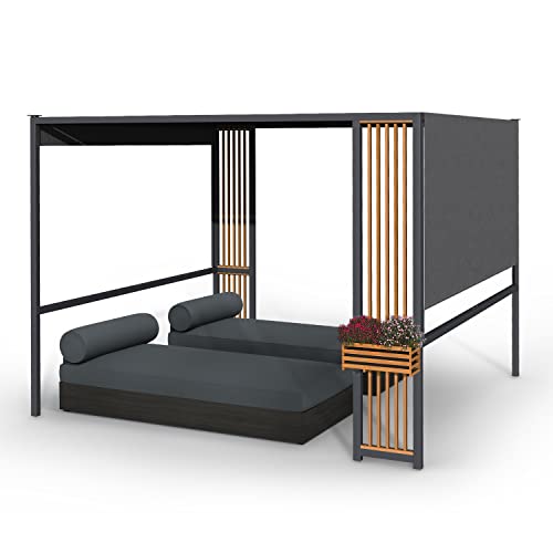 Blumfeldt Tonnelle 3x3m LED Solaire, Lattes Contreplaqué, Pe...
