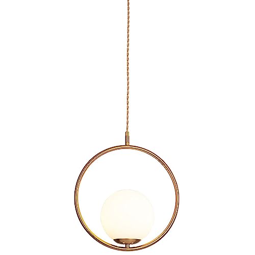 LGDEERCO Lustre Suspendu Doré Rond Verre Blanc Abat-Jour Des...