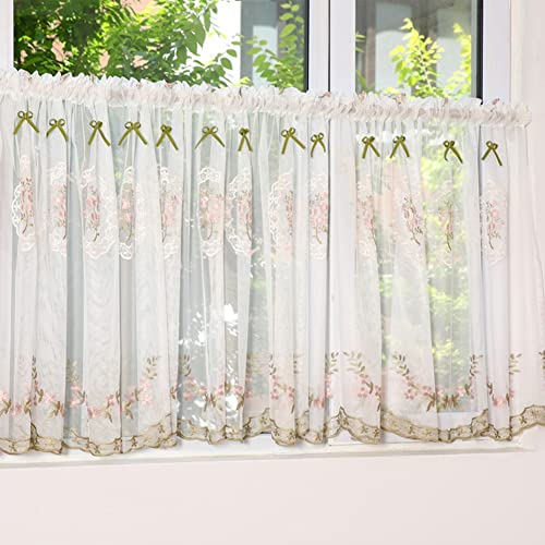 Rideau transparent blanc en voilage, demi-rideau dentelle br...