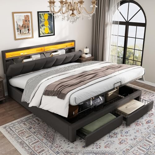 Lit Rembourré Hydraulique LED Double King Tête Escamotable M...