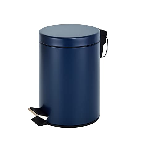 Cette poubelle à pédale est fabriquée en métal bleu mat de h...