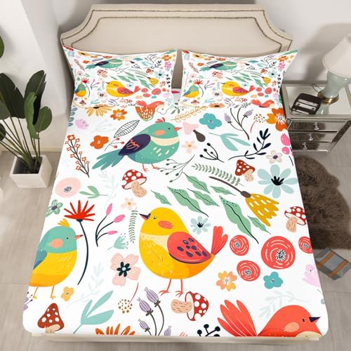 Homewish Drap Housse 90x190 Oiseau Kawaii pour Enfant Fille...