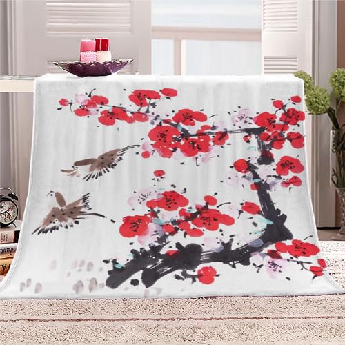 NYSMGS 3D Plaid Couverture Polaire Flanelle Japon Fleurs De...