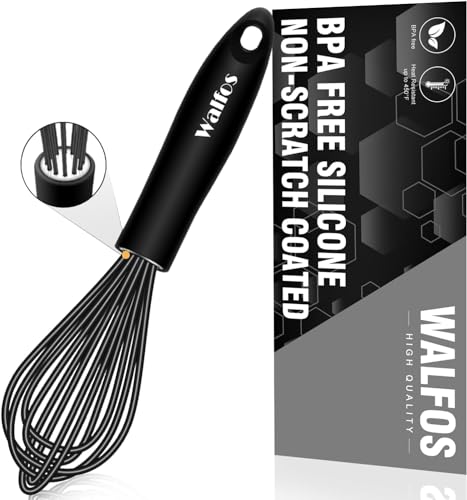 Walfos Fouet en silicone noir de 21,5 cm - Fouet mélangeur e...