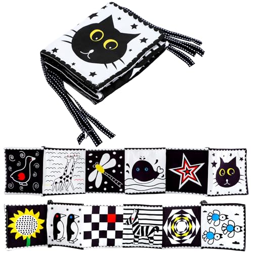 Clundoo Livre Noir et Blanc Double Face Bébé, Livre Tissu Éd...
