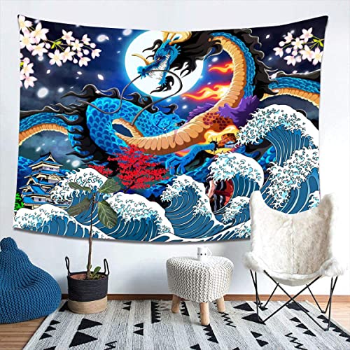 Tapisserie japonaise avec motif de vague de dragon de grande...
