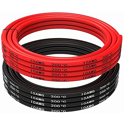 Câble électrique batterie rouge et noir 10 AWG, 6 mm², silic...