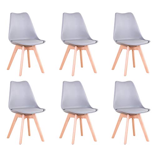 Lot de 6 Chaises Tulipe Modernes Assises Rembourrées Bois de...