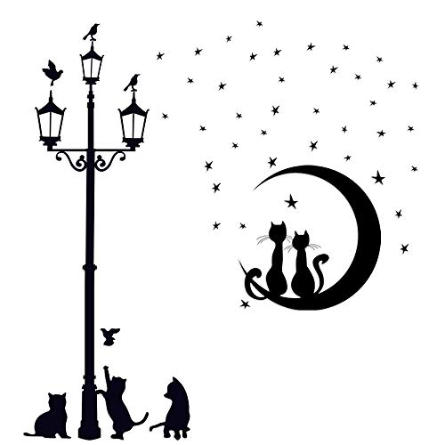 Lot de 2 Stickers Muraux Chats Sous Un Lampadaire plus Autoc...