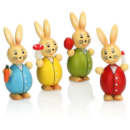 com-four® 4X Lapin de Pâques décoratif en Bois - Support pou...
