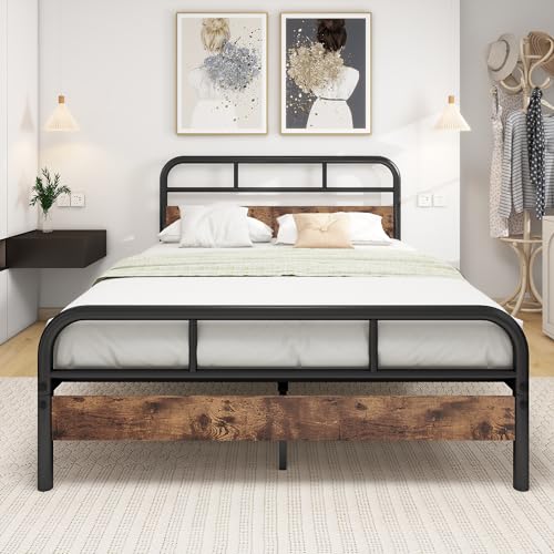 Dia Lit King Size Cadre en Métal Plat avec Tête en Bois