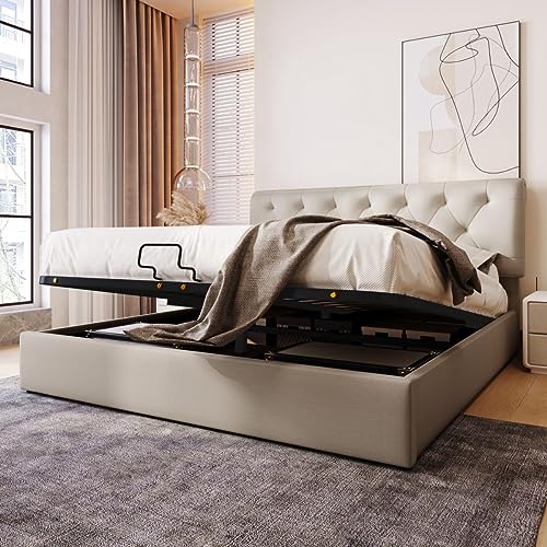 Hydraulique Lit rembourré 140x200cm, Tête de lit réglable, L...