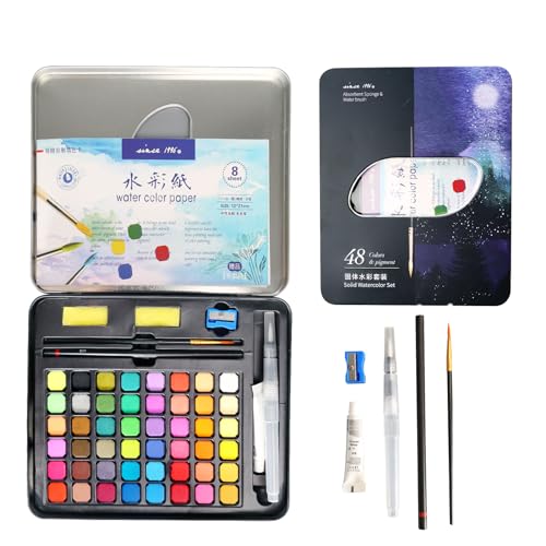 Ensemble Aquarelle 64 Pièces - 48 Couleurs Solides