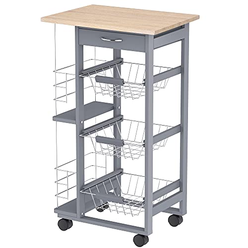 Chariot de service cuisine multi rangements 3 paniers + 2 bo...