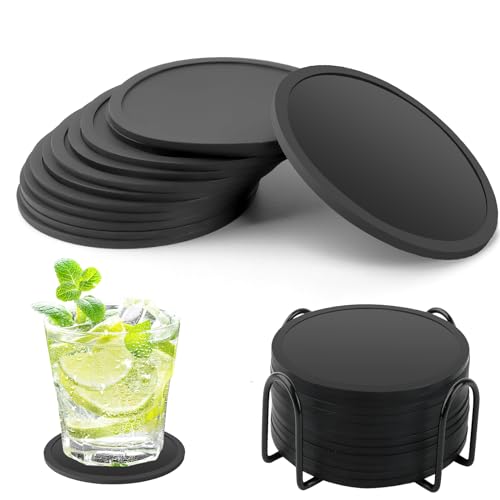 Dessous de Verre Noirs: Sous-Verres en Silicone Noir parfait...