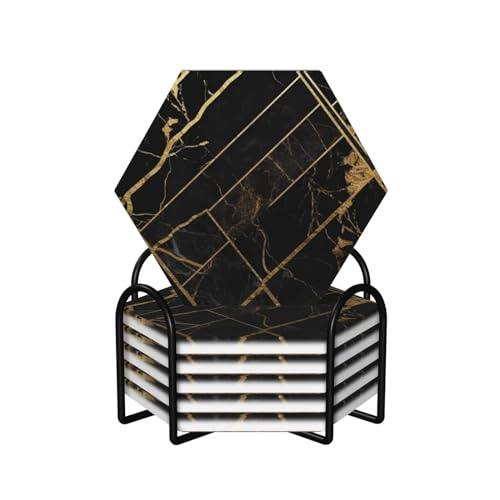 Céramique 6 dessous, support métal noir/doré