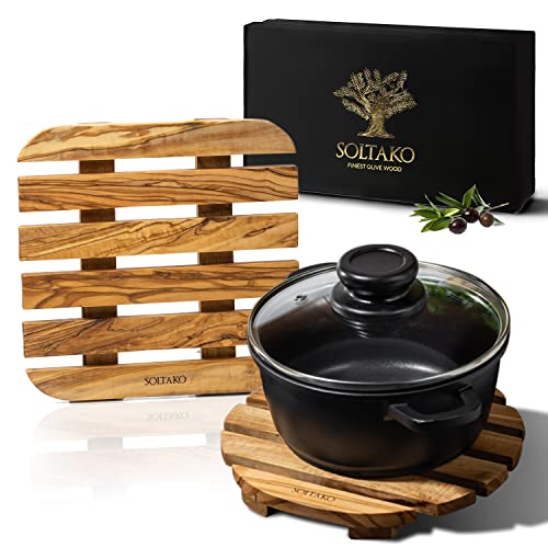 SOLTAKO Dessous Plat Bois d'Olivier Résistant Chaleur 2X