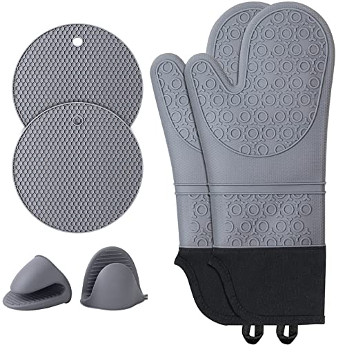 Gants de Four, résistant chaleur 230°C, 2 gants, 2 dessous d...