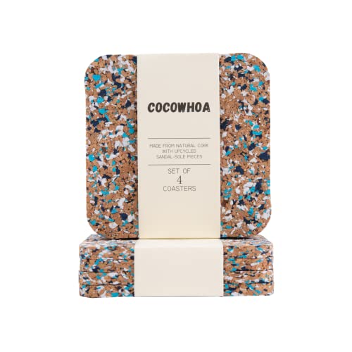 Cocowhoa Bottles 4 Dessous de Verre Liège Recyclé Bleu